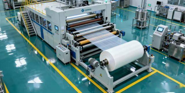 透气膜复合机(如PUR热熔胶机型)需预留前后缓冲段:放卷→涂胶→热压复合→收卷,总长≥15米。